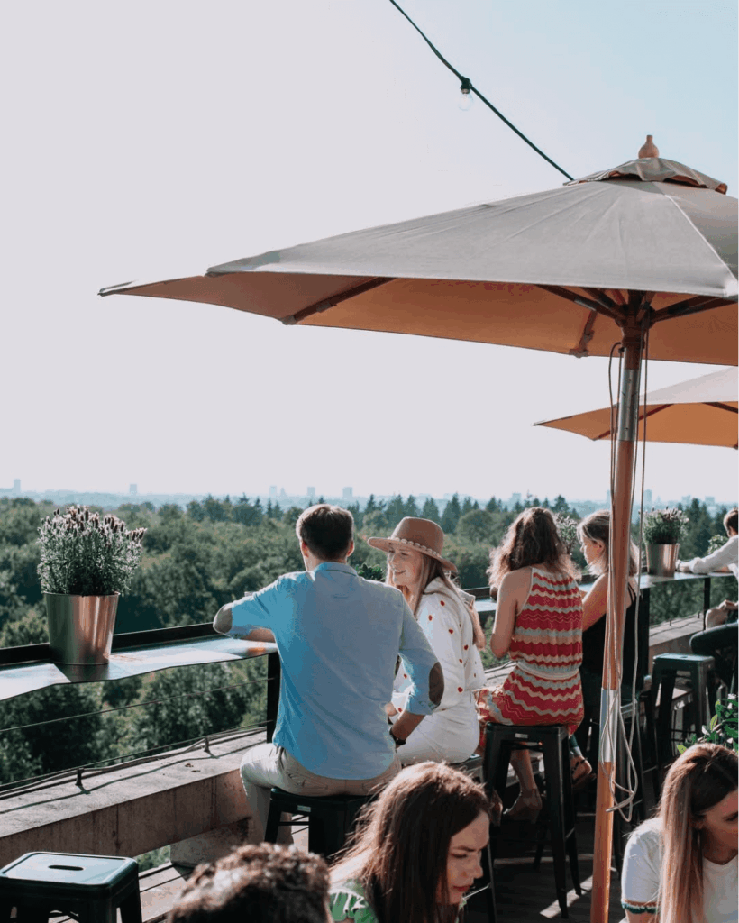 Un rooftop où le temps semble suspendu, perché entre ciel et forêt, au 11e étage du « bâtiment aux escargots » aux Quatre Bras de Tervuren. Soko Rooftop vous offre une échappée unique entre la canopée verdoyante de la forêt de Soignes et la skyline bruxelloise.